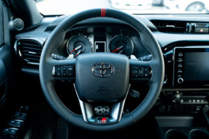 - Leather steering wheel with mounted controls with GR logo